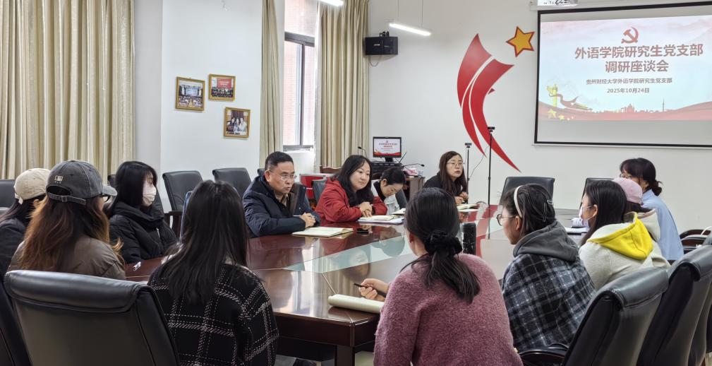 10月24日上午,外语学院研究生党支部解难题、促发展,共绘成长蓝图,我为群众办实事”座谈会在励学楼301会议室举行。学院党委书记黄贵平、纪委书记李平、党支部书记张夕与党支部全体成员齐聚一堂,以“聚焦研究生成长需求、破解发展难题”为核心,围绕就业规划与校园生活保障展开深入交流,切实将“为群众办实事”落到实处。