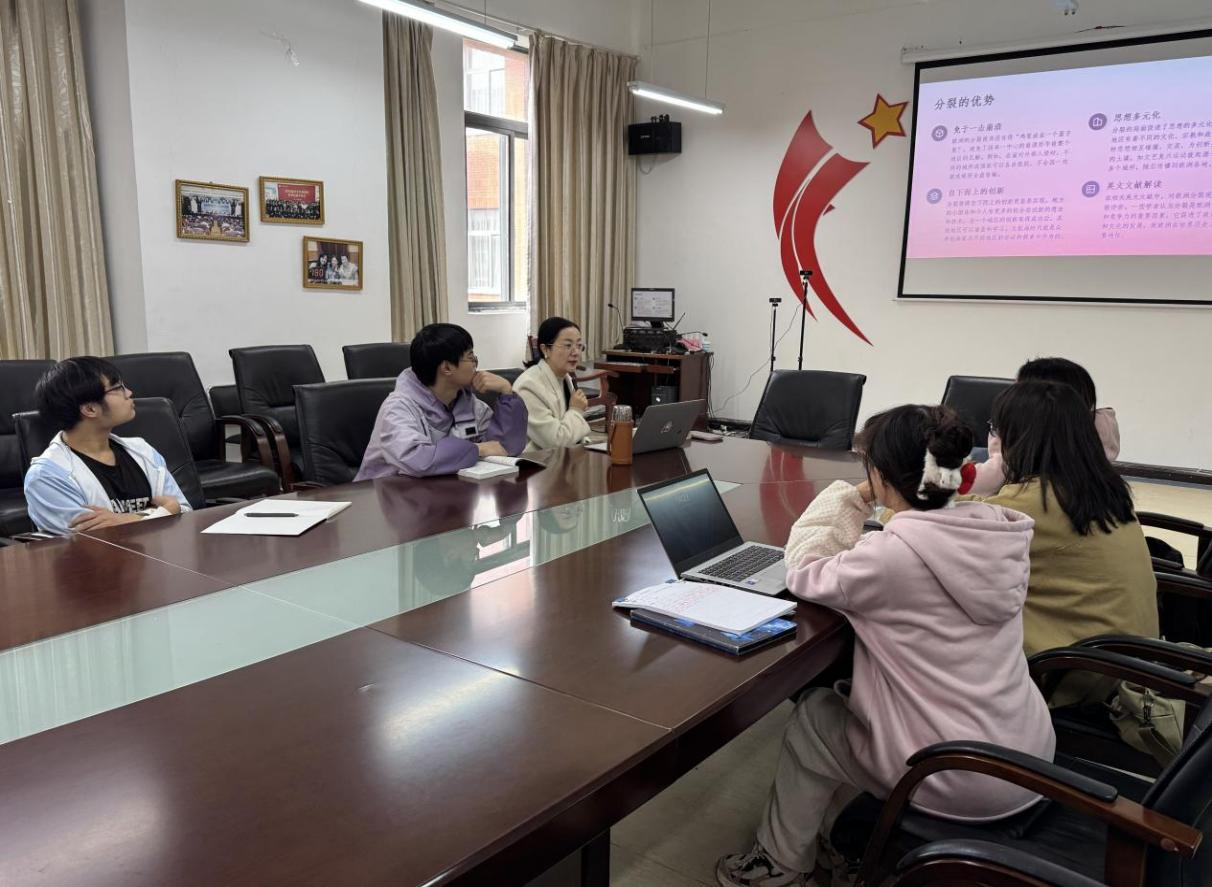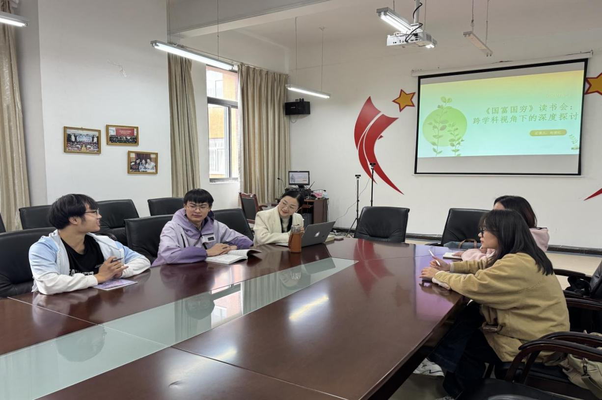 2025年10月23日下午,外语学院在励学楼301会议室举办《国富国穷》“读书沙龙”活动。本次活动特邀经济学院赵俊红老师主持,以戴维·S·兰德斯教授的这部经典著作为核心,聚焦“国家命运沉浮背后的深层逻辑”,吸引了来自不同专业的同学踊跃参与,现场氛围热烈。