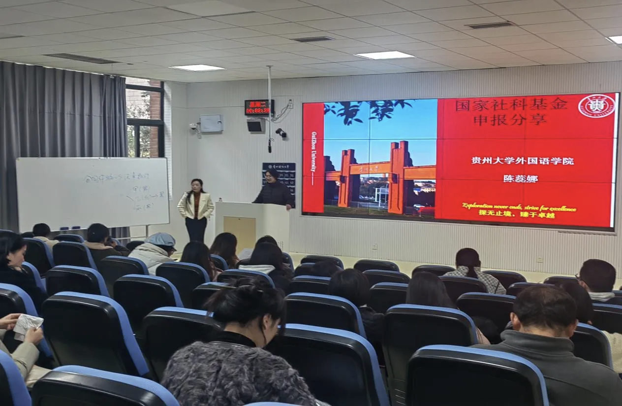 为扎实推进学科建设,提升教师科研项目申报质量,11月18日下午,外语学院在乐学楼阶101教室成功举办国家社科基金项目申报专题讲座。本次讲座特邀贵州大学外国语学院陈蕊娜博士担任主讲,学院专职教师和部分研究生参加。讲座由外语学院副院长李翠蓉主持。