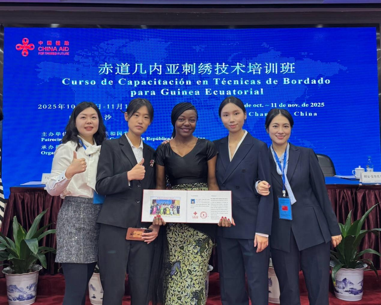 2025年10月至11月,我院西语系学生欧晓晓作为项目助理,全程参与中国商务部主办、湖南外贸职业学院承办的赤道几内亚刺绣技术培训,承担翻译、沟通协调等工作,以语言为桥,在跨文化交流中收获成长与感动。