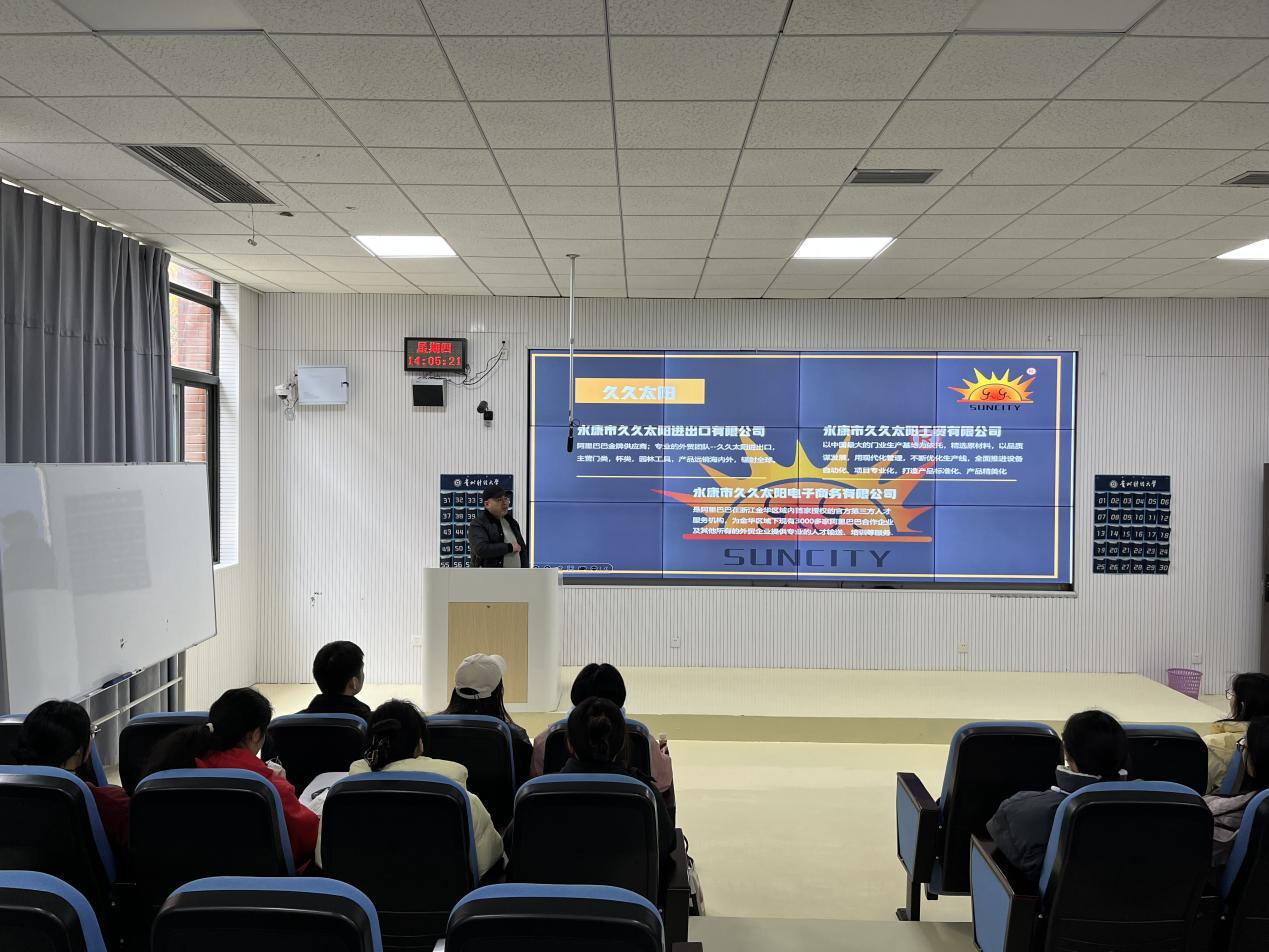 招聘宣讲会在乐学楼101顺利举行,我院二十余名2026届毕业生踊跃参与。会上,企业代表详细介绍了浙江省永康市的区域发展优势、特色产业布局,重点解读了当地外贸产业的发展现状与前景。同时,围绕公司发展历程、业务板块、企业文化等内容展开讲解,聚焦外贸业务员岗位的任职要求、工作内容、薪资福利及职业发展路径,为毕业生提供了清晰的求职指引。