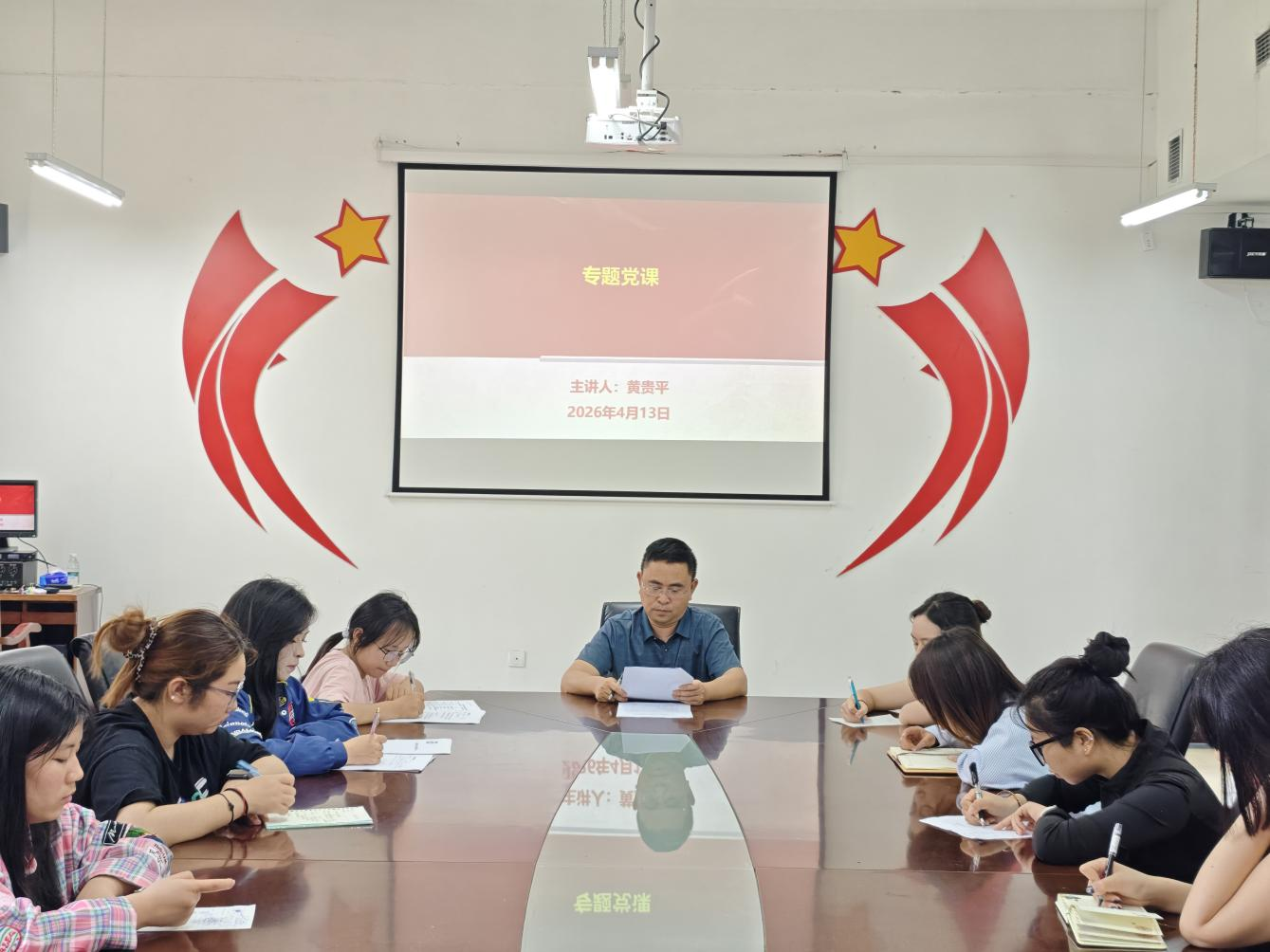 开班仪式结束后,黄贵平书记以“以时代党员新标准,推动学校事业高质量发展”为主题,为学员们讲授了第一课。黄贵平书记重点阐述了新时代党员的新标准,指出在新的历史方位下,党员不仅要在政治上过硬、信念上坚定,更要在本领上高强、作风上务实。他结合学校发展实际,勉励学员们在学风建设、校园服务、社会实践等方面发挥先锋模范作用,以实际行动凝聚学校发展的强大力量。