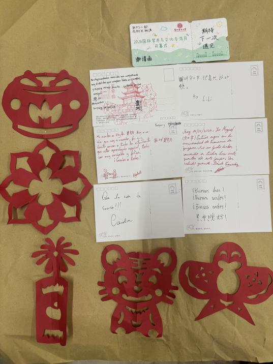 为深化西班牙语实践教学,搭建中外青年文化交流桥梁,贵州财经大学外语学院西语角近期特别邀请贵州中医药大学厄瓜多尔留学生参加中西文化交流主题活动,以西班牙语为纽带,在剪纸体验与明信片互赠中,共话情谊、互鉴文明。