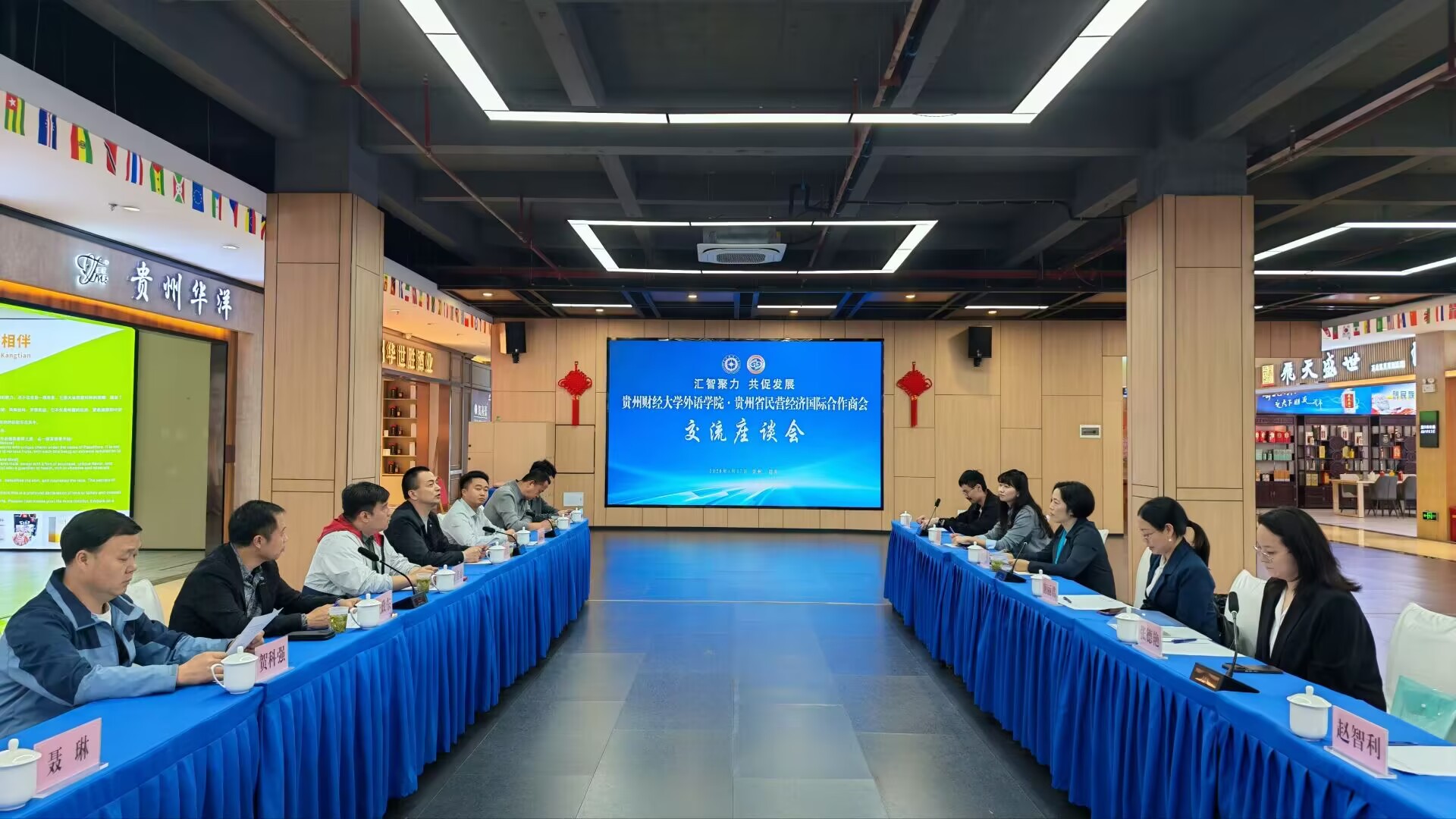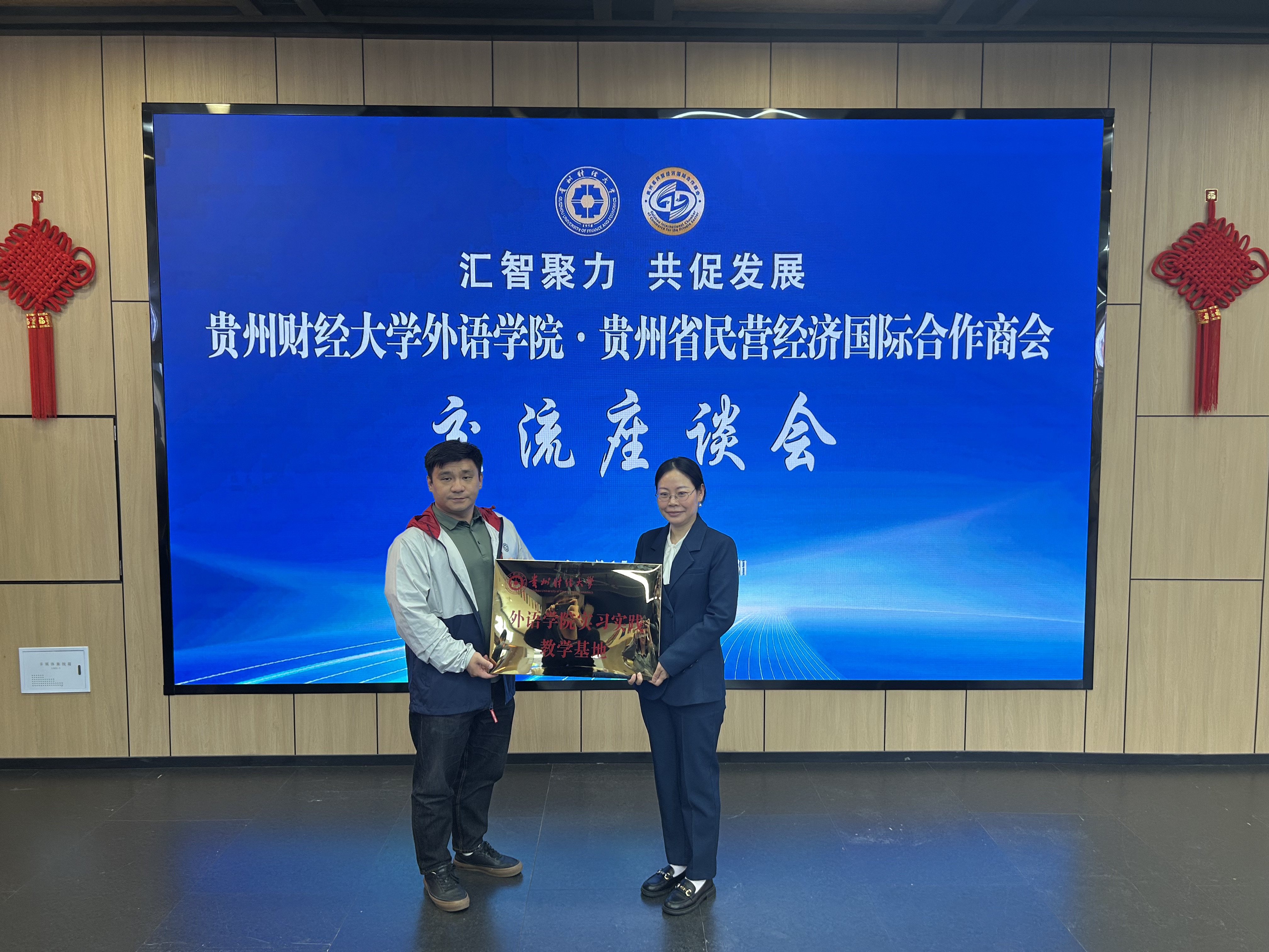 为深入贯彻落实 “访企拓岗促就业”专项行动要求,进一步深化校企合作、拓宽学生实践与就业渠道。2026年4月17日,外语学院院长刘利音、副院长唐丽君一行赴贵州省民营经济国际合作商会开展校企合作座谈交流,并举行实习基地签约授牌仪式。